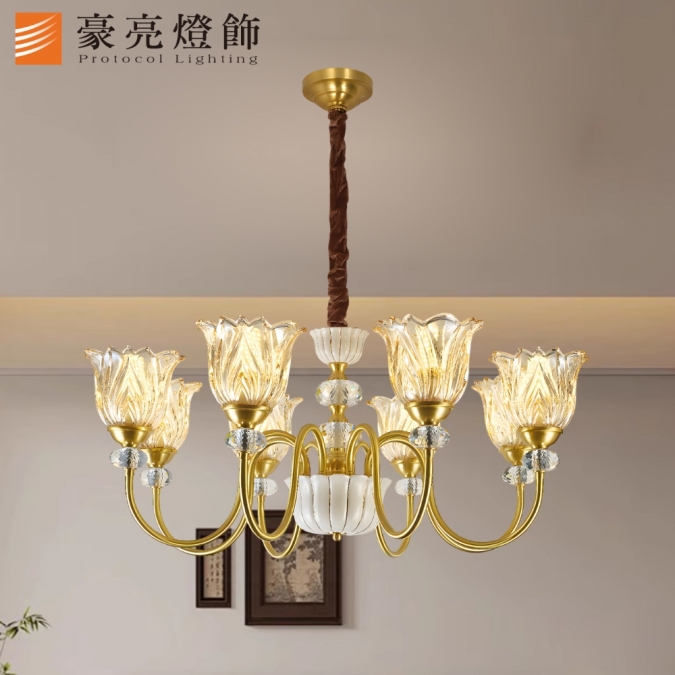 海棠陶瓷 8IC 吊燈 (純銅)