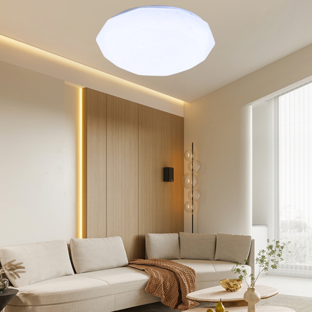 品名 雷諾斯 5+1 燈吸頂燈(壓克力) 材質 金屬燈體+壓克力燈罩 尺寸 直徑 50cm * 高 8cm 光源 另購 E27燈頭燈泡 * 5 + E27燈頭 小夜燈 *1 (1)請使用LED燈泡,不要使螺旋省電/鎢絲燈泡) (2)燈泡尺寸 建議使用 一般 LED 12W 以下大小 【內附 電子IC分段】 一段:亮3燈 二段:亮中間小夜燈 三段:亮5燈 四段:亮2燈+中間小夜燈 適用 約4-6坪