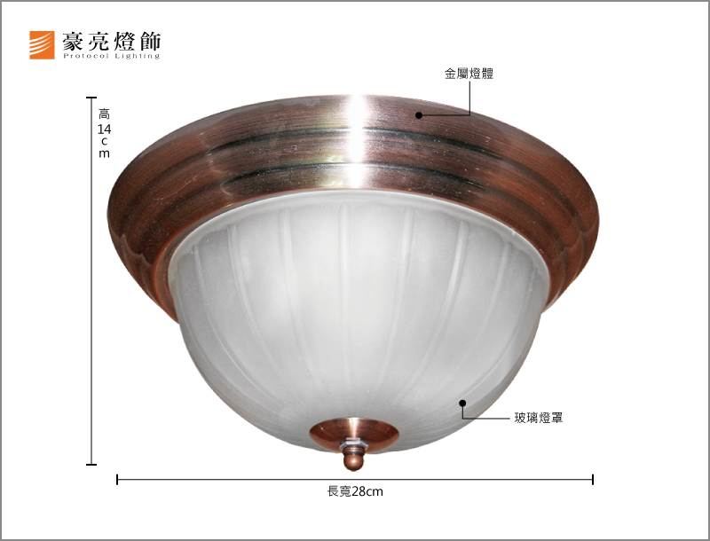 金屬鍍紅古銅燈體,玻璃燈罩