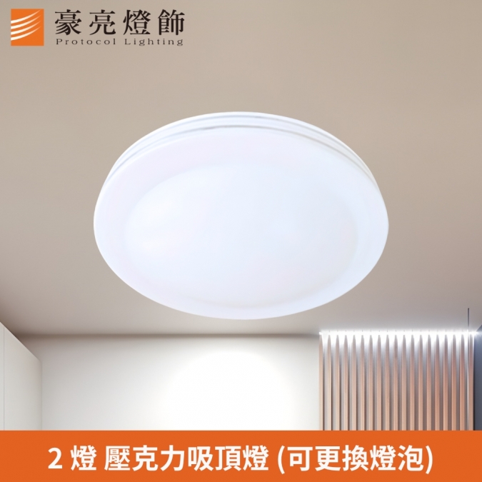 品名 帕克 2 燈吸頂燈(壓克力) 材質 金屬燈體+壓克力燈罩 尺寸 直徑約27cm * 高 8cm 光源 另購 E27燈頭燈泡 * 2 (1)請使用LED燈泡,不要使螺旋省電/鎢絲燈泡) (2)燈泡尺寸 建議使用 一般 LED 12W 以下大小 適用 約1-2坪