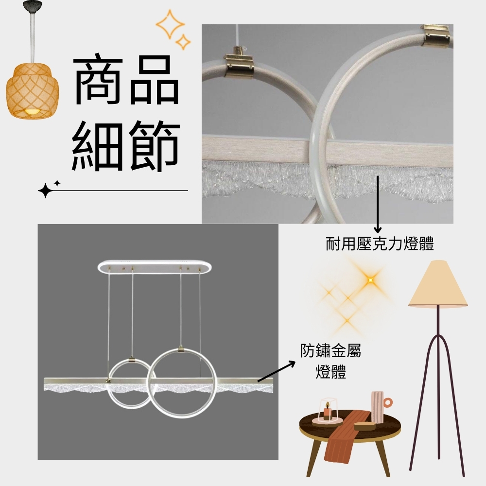 品名 LED 100W 雅蒂拉調光調色吸頂燈 (附遙控器) 材質 金屬燈體、壓克力燈罩 尺寸 燈體總長約120cm * 高度約38cm 吸頂盤長約40cm*寬約10cm (附線約80cm 可縮短調整) 光源 內附LED 100W光源 (附遙控器/可調光調色) 適用 約8-9坪