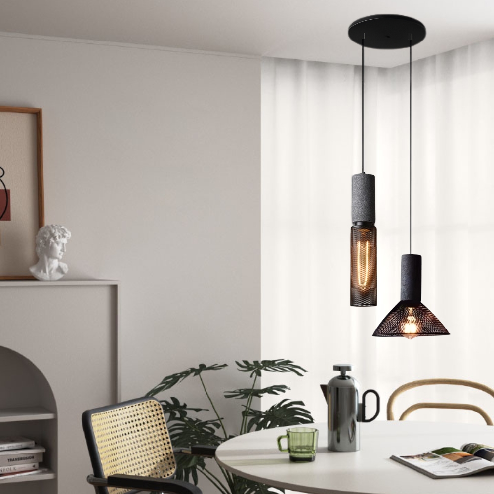 品名 凱爾達 2 吊燈 (附LED燈泡) 材質 金屬燈體 + 鐵藝燈罩 尺寸 燈體總長約25cm * 吸頂盤直徑約20cm (附線約90cm 可縮短調整) 光源 附LED工業風燈泡*2 適用 適用約2-3坪