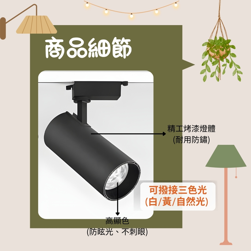 LED 15W COB 三色撥接軌道燈 (兩色可選)