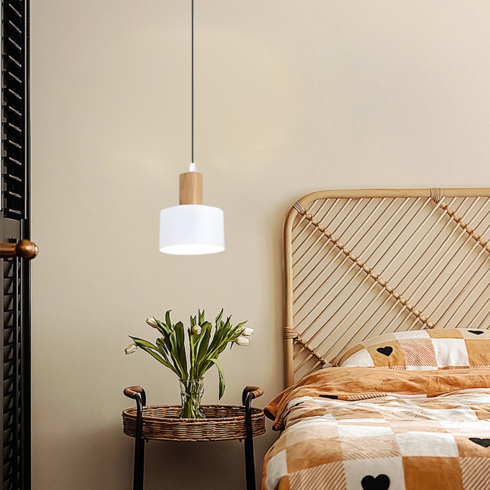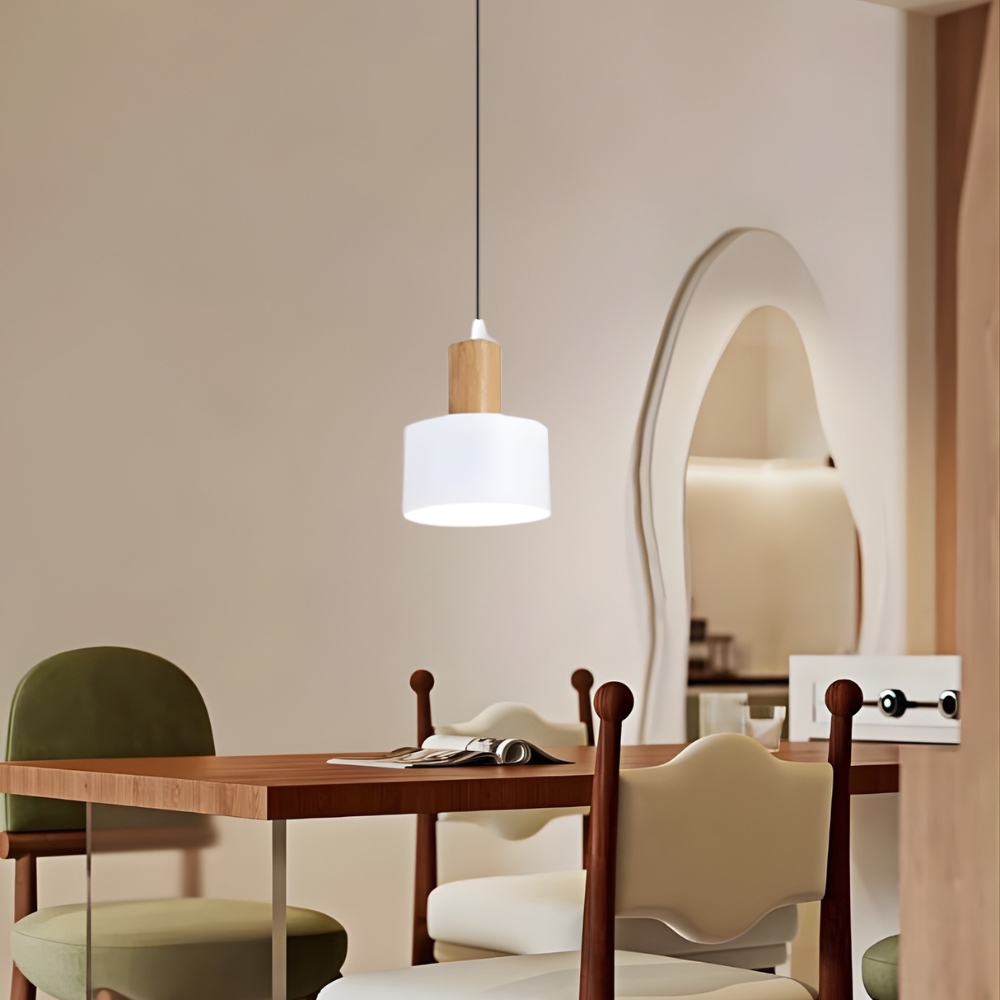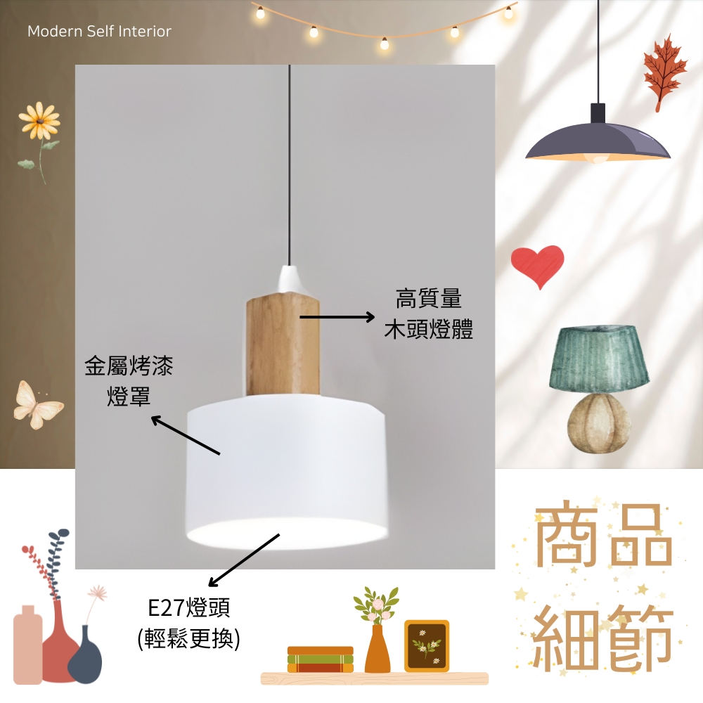 木質燈體 + 金屬烤漆燈罩